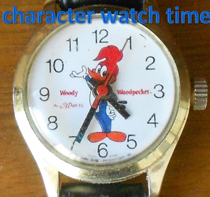 Woody Woodpecker watch marked WLP (for Walter Lantz Productions) on the left of