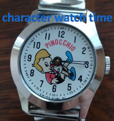 hand and blue minute hand to tell the time. Marked Swiss made and internally marked Sovereign Watch Company Inc. Swiss unadjusted one jewel. You don't see this one too often but he is more common then the girls version Tammy (see above) and you'll need your expert watchmaker to repair it when you do find one.